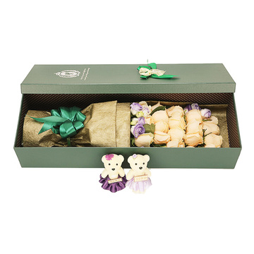 19支香槟玫瑰,紫桔梗搭配,一对小熊
