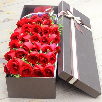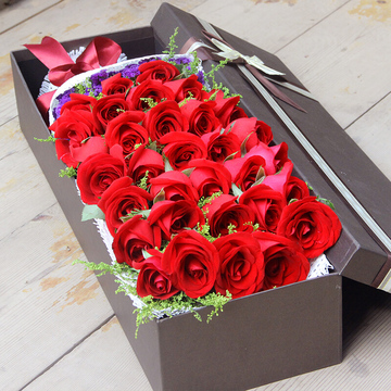 33朵红玫瑰鲜花礼盒,黄莺搭配