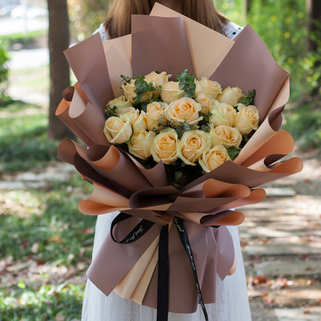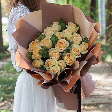 33朵香槟玫瑰,尤加利间插