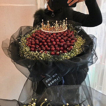 99颗车厘子,白色满天星丰满围边,一个皇冠