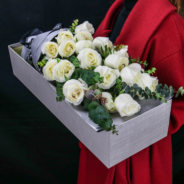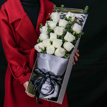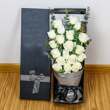 19朵白玫瑰,尤加利叶丰满间插
