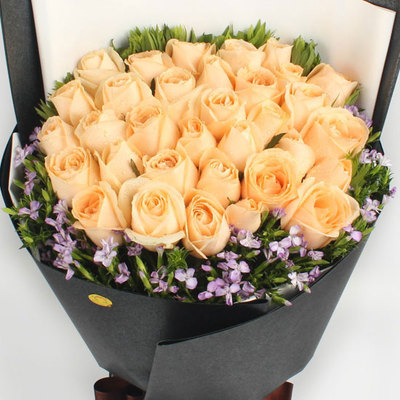 精选33朵香槟玫瑰,配花外围丰满。