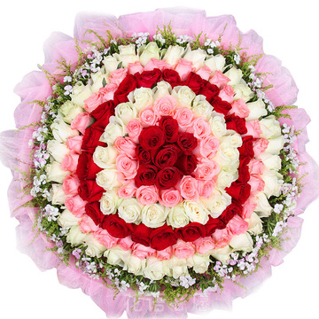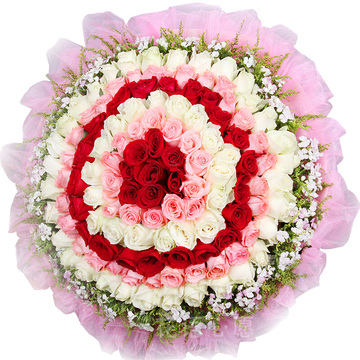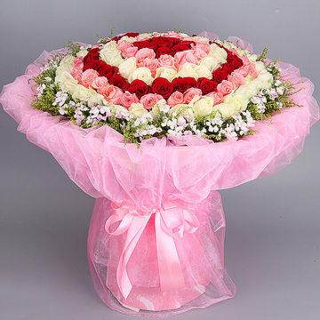 99朵混色玫瑰(红+白+戴安娜粉玫瑰),粉色相思梅丰满为百年