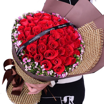 52朵红玫瑰,粉色石竹梅外围丰满围边