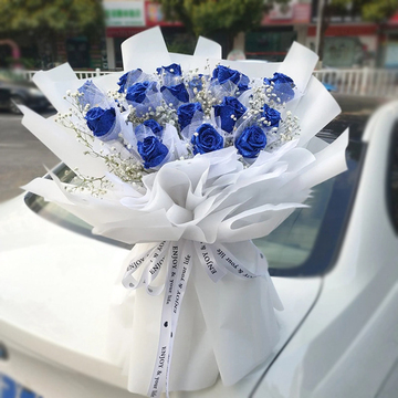 16朵蓝色妖姬(鲜花),白色满天星间插。