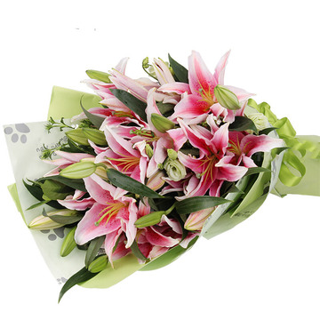 26朵粉色香水百合,栀子叶+相思梅+桔梗丰满搭配。