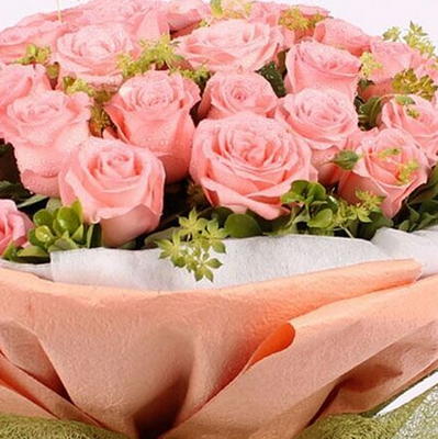 白色和香槟色手揉纸包装,绿色镂空纸束腰,果绿色丝带束扎。花语:如果那时没有遇见你,可能这一生都不会知道如此爱一个人的滋味吧。附送: