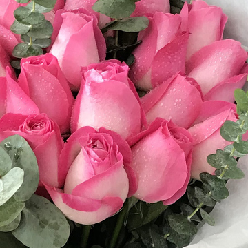 19朵糖果粉玫瑰,搭配尤加利叶。