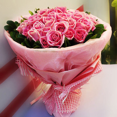 33枝戴安娜粉玫瑰搭配绿叶