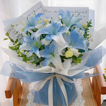 棕色包装纸圆形包装,棕色丝带束扎。花语:我愿生命里只有单纯的盼望,只有一种安定和缓慢的成长,喜欢岁月漂洗过的颜色,喜欢没有唱出的歌,更愿和你相爱一生一世永不分离。附送: