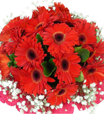 红色卷边纸圆形包装花语:红红火火,幸幸福福附送: