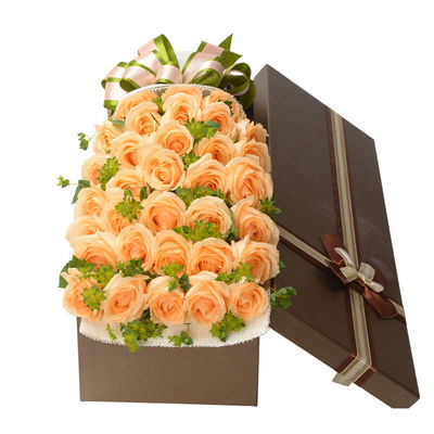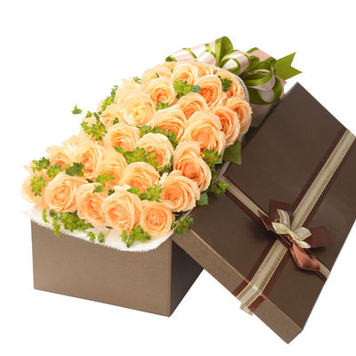 33朵精品香槟玫瑰,叶上黄金(或黄莺)间插