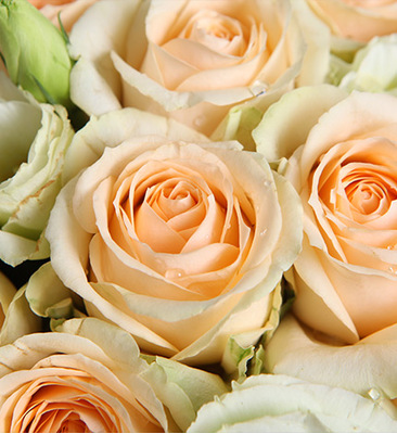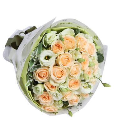 香槟玫瑰19枝,绿色桔梗6枝。