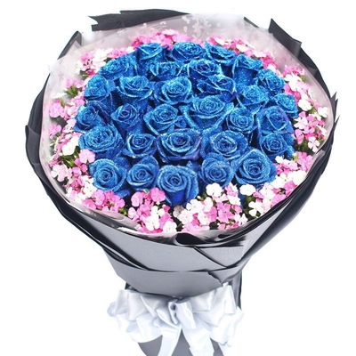内层草绿色手揉纸,外层白色四叶草牛油纸,绿色缎带花结。花语:星光灿烂风儿轻,为你等候到天明。明明白白我的心,一腔柔情盼你听。附送: