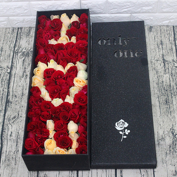 75支精品混色玫瑰(红玫瑰、香槟玫瑰),香槟拼字I❤U