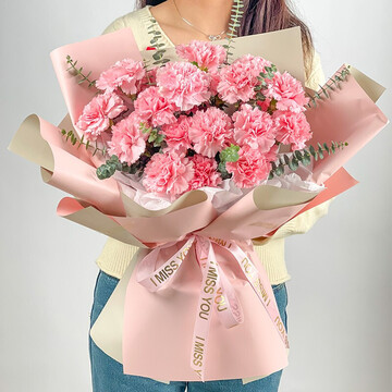 精选19朵粉色康乃馨,尤加利搭配