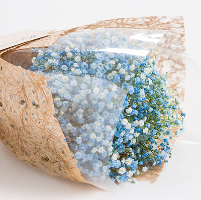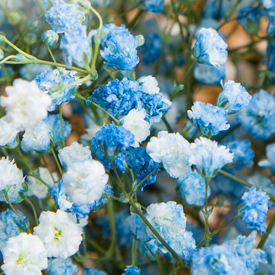 蓝色和白色满天星花束。