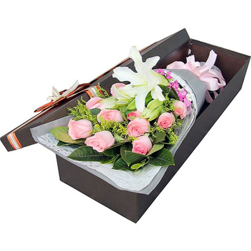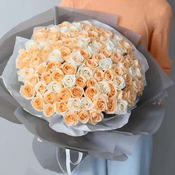 白色雾面纸内衬,黑色欧雅纸外层圆形包装花语:今生今世只想和你一起度过,一起享尽人间繁华乐趣,一起牵手走到地老天荒附送: