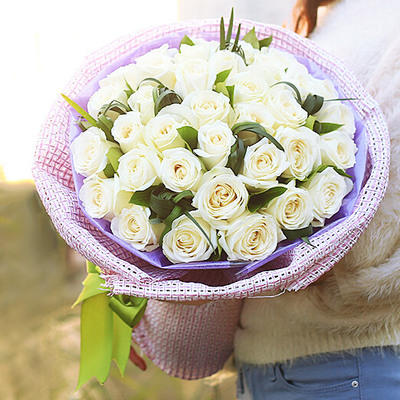 精美紫色软纸内衬、外围粉色编制装饰成圆形,果绿色缎蝴蝶结装饰。花语:恋一个美丽善良的你,说一席永不离弃的话,走生命风雨携手的路,守一段天长地久的情,开一朵地老天荒的花!附送: