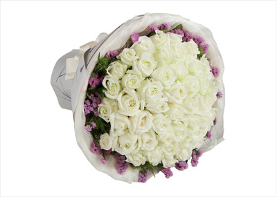 白玫瑰66枝,搭配适量勿忘我、绿叶
