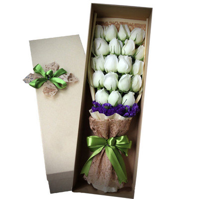 精美包装纸单面包装,绿色蝴蝶结束扎,精美长方形礼盒装。花语:有一片天涯叫咫尺,有一亩桑田叫沧海,有一束爱情叫至死不渝,有一股思念叫刻骨铭心。我愿在你的天涯里,守护桑田散播思念果实,期待爱情玫瑰开花。附送: