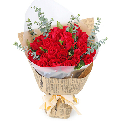 红色牛皮纸叠角包装,英文雾面纸外层叠角包裹,金色缎带束扎花语:轻轻的声问候融入了我所有的心愿,淡淡的祝福倾注了我无限的真诚,祝福永远开开心心快快乐乐!附送: