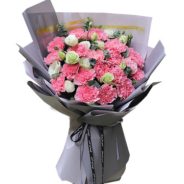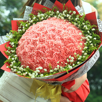 99朵粉色康乃馨,满天星黄莺丰满围边