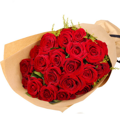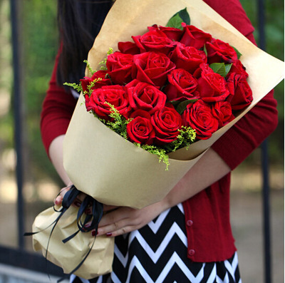 原色牛皮纸扇形精美包装,黑色丝带系蝴蝶结束扎。花语:你是我深深的爱恋,希望你能记得我们这段美丽的爱情故事。附送: