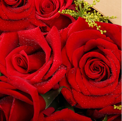 19支红玫瑰,栀子叶、黄莺搭配。