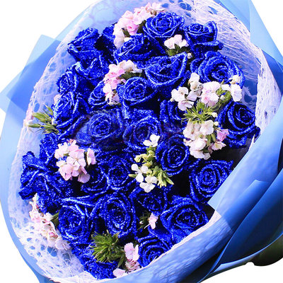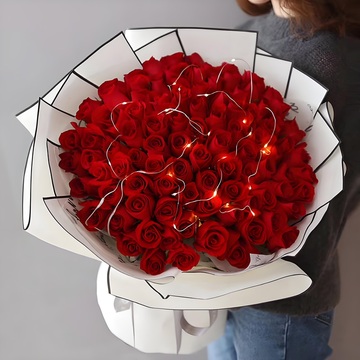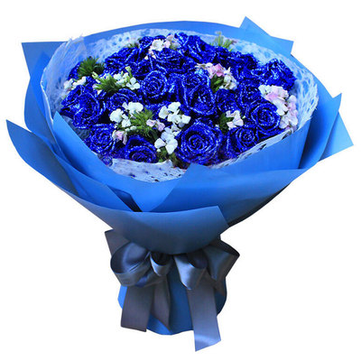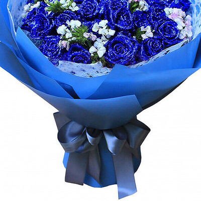 白色纸内衬,蓝色硬纸外围圆形包装。花语:弱水三千,只取一瓢;花开满园,只取一朵,红颜无数,只恋你一个。附送: