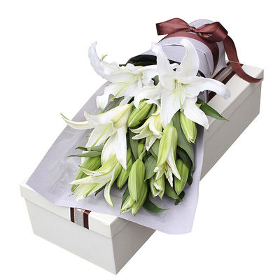 4枝多头香水白百合,黄莺,绿叶丰满点缀
