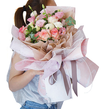 内衬粉色雪梨纸,外层粉色欧雅纸层次包装,豆沙色及白色丝带束扎花语:爱你是我今生最甜的语言,在你耳边絮絮的呢喃,我知道这爱中也许会偶尔有痛,让我的细语中断,但是我们的理解却会时刻让爱保鲜,亲爱的,我爱你!附送: