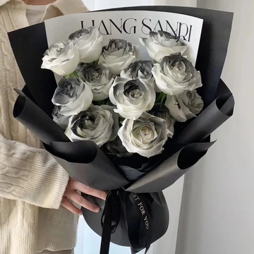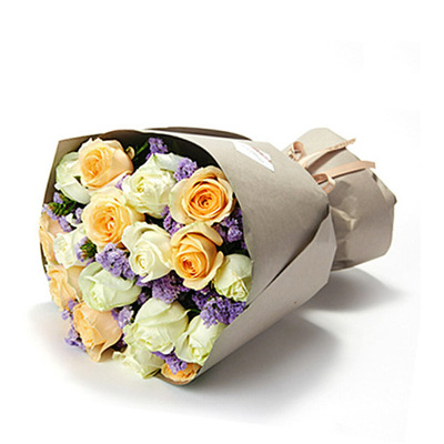 浅咖色牛皮纸纸精美包装,咖啡色丝带系蝴蝶结束扎。花语:谱写动人的爱情故事,属于你我的浓情蜜意。附送: