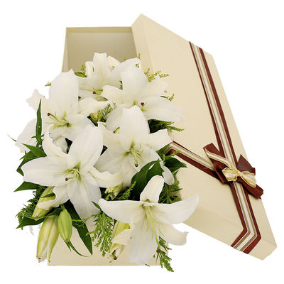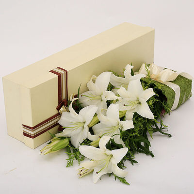 5枝多头香水白百合,黄莺,绿叶丰满点缀