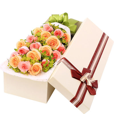白色落水纸扇形包装,绿色缎带扎束,白色礼盒装花语:和你在一起的日子,是我人生中最好的时光。附送: