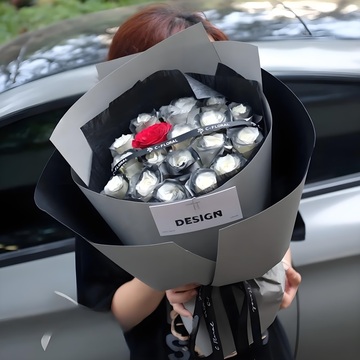 黑色韩素纸包装,黑纱盖头花语:愿与你长相厮守,愿与你白头到老,你的一生,我来负责。附送: