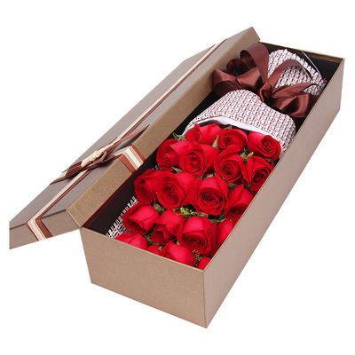 咖啡色麻片包装,咖啡色缎带束扎,高档长方形礼盒花语:将你烙进我的灵魂,镌刻在我的心头,清晰地生根发芽,执拗地交错生根。等岁月老去时,浮起的就不是模糊的容颜附送: