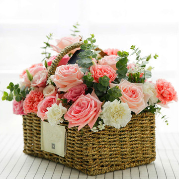 精美花篮包装花语:我相信你,生来如同璀璨的夏日之花,不凋不败,妖冶如火。附送: