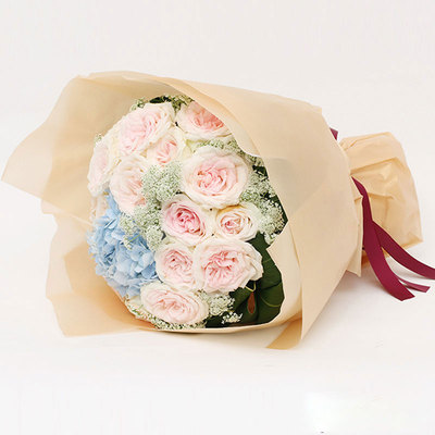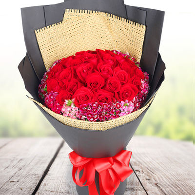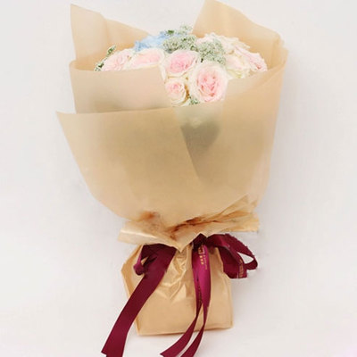 淡黄色精品纸包装,蝴蝶结束扎。花语:好想朝朝暮暮,更想天长地久。思念悠悠,爱意浓你。附送: