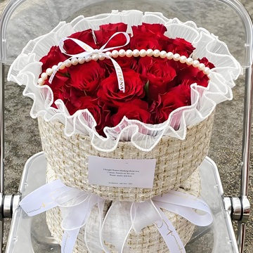 21朵红玫瑰,珍珠搭配