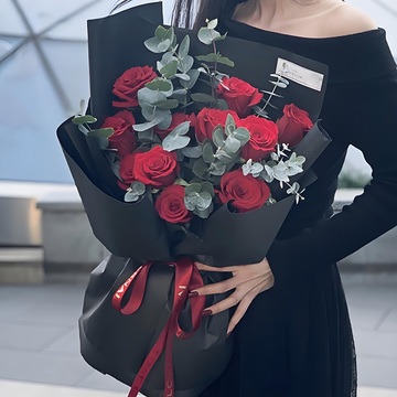 11朵红玫瑰,尤加利搭配