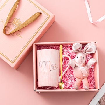 伴手礼套装水杯女创意马克杯卡通杯子家用礼品陶瓷杯咖啡杯礼盒 高款-火烈鸟粉色套装