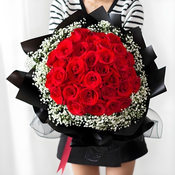 黑色韩素纸搭配黑色网纱花语:时间的巨轮无法抹去我对你的思念纵使海枯石烂,你的身影永存于我心中…附送: