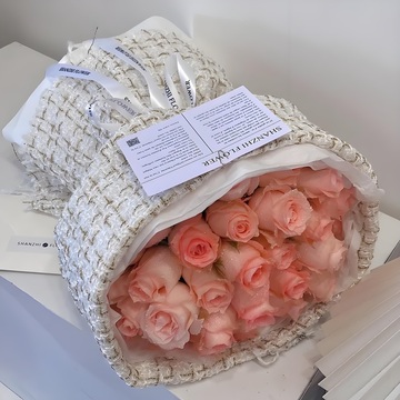 米色格子小香风包装花语:你是优雅本身,淡淡的,柔柔的,不争不抢,惹人爱怜。附送: