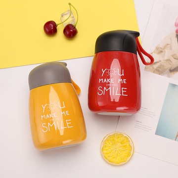 手提大肚保温杯简约便携小巧304不锈钢大肚杯 橙色