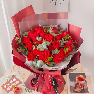 内衬白色雾面纸,外层红色欧雅纸包装花语:有一种感觉总是在失眠时,才承认是相思,有一种缘分总是在梦里醒后,才相信是永恒。附送: