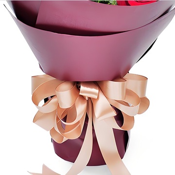 朱红色硬皮纸搭配精美蝴蝶结。花语:不要用温柔的呼唤使我着迷,不要用婷婷的倩影使我心动,不要用含情的目光使我受尽苦刑。附送: