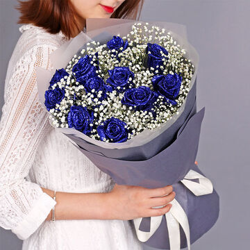 11朵蓝色妖姬(鲜花),搭配满天星