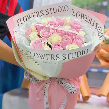 内衬白色雪梨纸,白色英文纸,外层粉色欧雅纸包装花语:察觉到没有,爱就围绕在你身边!附送: