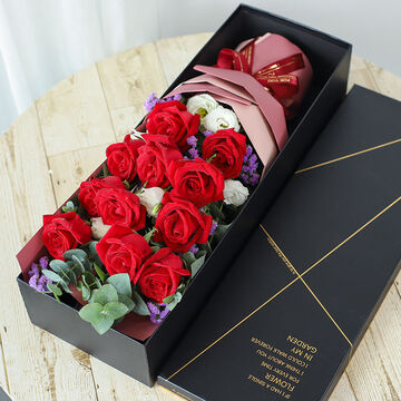 长方形礼盒装(礼盒颜色根据店里安排)花语:最好的爱情,战得胜时间,抵得住流年,经得起离别,受得住思念。时过境迁,初心未变,执子之手,与子偕老。附送: